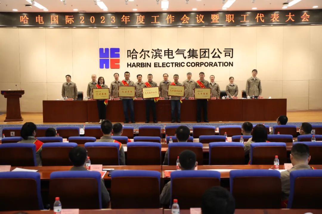 公司領(lǐng)導(dǎo)為獲得表彰的先進(jìn)個(gè)人和先進(jìn)集體代表頒獎(jiǎng) 職工代表舉手表決 大會(huì)審議通過(guò)了題為《踔厲奮發(fā) 勇毅前行 在接續(xù)奮斗中再創(chuàng)企業(yè)發(fā)展新輝煌》的工作報(bào)告、《哈電國(guó)際2023年度預(yù)算》、《哈電國(guó)際企業(yè)年金方案(實(shí)施細(xì)則)》,表彰了2022年度先進(jìn)個(gè)人和先進(jìn)集體。 會(huì)議以“現(xiàn)場(chǎng)+視頻”的形式召開(kāi)。公司職工代表、“雙先”代表、中層領(lǐng)導(dǎo)人員、高級(jí)及以上專業(yè)崗位人員、員工代表、統(tǒng)戰(zhàn)人士代表、青年代表以及參股企業(yè)代表等參加會(huì)議。