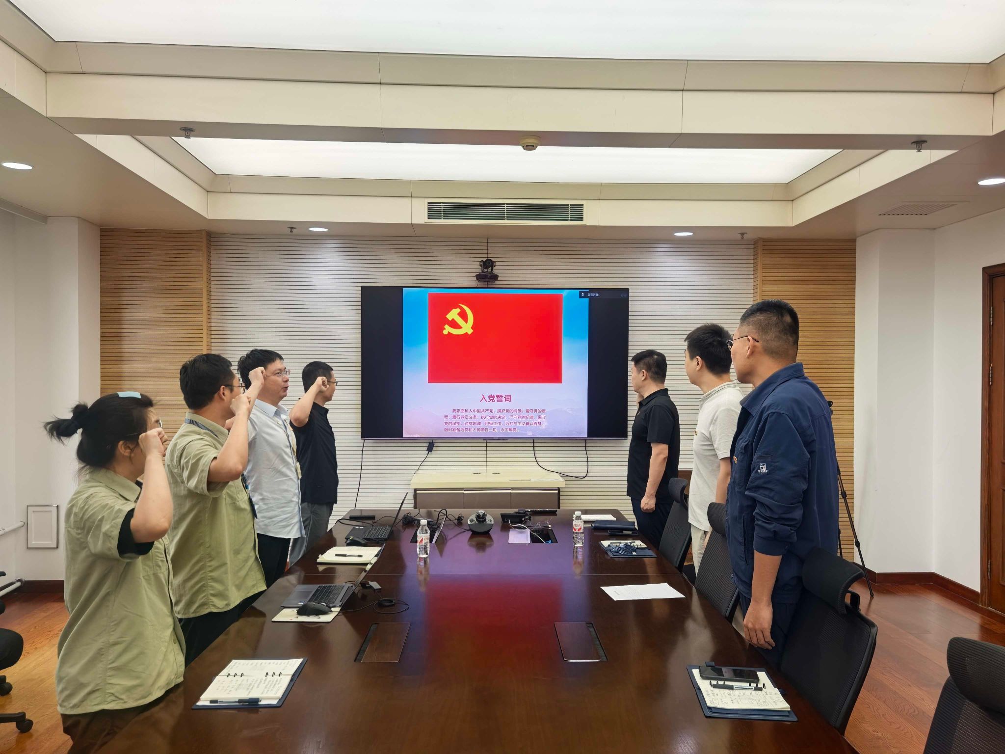(運維服務部黨支部) 哈電國際南亞區(qū)域總部黨總支、招標采購中心黨支部、戰(zhàn)略發(fā)展部黨支部開展了“重溫入黨誓詞”主題黨日活動。全體黨員同志面向鮮紅的黨旗,重溫入黨誓詞,并與黨旗合影。
