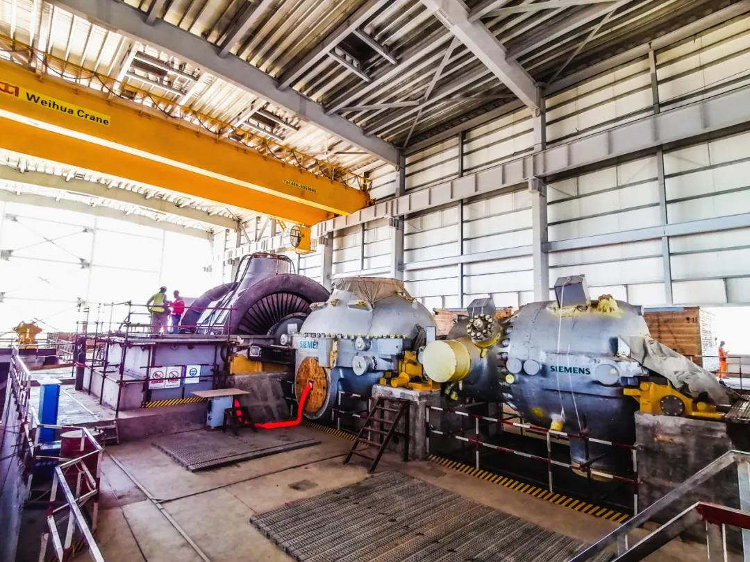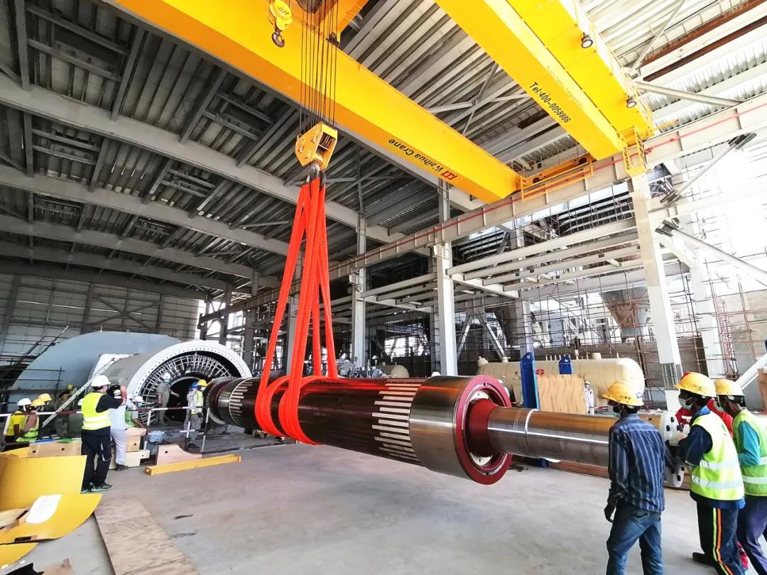 由西門(mén)子和哈電國(guó)際聯(lián)合體承建的巴基斯坦賈姆肖羅2×660MW超超臨界燃煤電站項(xiàng)目,于當(dāng)?shù)貢r(shí)間9月16日順利完成汽輪機(jī)低壓內(nèi)缸扣缸,此前現(xiàn)場(chǎng)還完成了汽輪發(fā)電機(jī)穿轉(zhuǎn)子工作。 汽輪發(fā)電機(jī)組 本項(xiàng)目汽輪發(fā)電機(jī)組由德國(guó)西門(mén)子提供,為三缸兩排汽機(jī)型,其縱向布置于汽機(jī)間15.5m主運(yùn)轉(zhuǎn)層平臺(tái)上。為確保安裝工作的順利進(jìn)行,哈電國(guó)際項(xiàng)目部提前策劃,精心組織,作業(yè)前積極與西門(mén)子方就相關(guān)作業(yè)流程進(jìn)行細(xì)致梳理,為后續(xù)作業(yè)的順利開(kāi)展奠定良好基礎(chǔ)。在業(yè)主、監(jiān)理及西門(mén)子等相關(guān)方的見(jiàn)證下,項(xiàng)目部作業(yè)人員嚴(yán)格執(zhí)行施工方案,落實(shí)施工細(xì)節(jié),確保各施工環(huán)節(jié)有條不紊地進(jìn)行,保障了發(fā)電機(jī)穿轉(zhuǎn)子及汽輪機(jī)低壓內(nèi)缸扣缸工作的圓滿完成。 發(fā)電機(jī)穿轉(zhuǎn)子