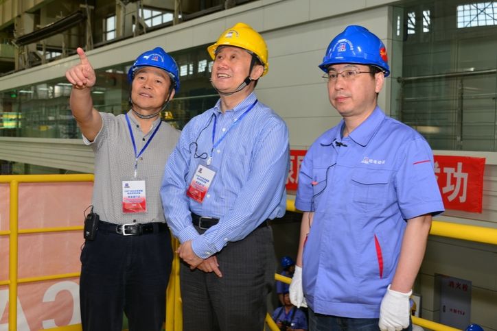 6月15日,集團(tuán)公司董事長(zhǎng)、黨委書(shū)記斯?jié)煞驎?huì)見(jiàn)了到哈參加2016年度第二次主泵高層協(xié)調(diào)會(huì)的國(guó)家電力投資集團(tuán)董事長(zhǎng)王炳華一行,陪同王炳華等實(shí)地參觀考察了動(dòng)裝公司,并就相關(guān)合作進(jìn)行了親切座談。 在動(dòng)裝公司生產(chǎn)現(xiàn)場(chǎng),王炳華認(rèn)真了解了 CAP1000/CAP1400主泵屏蔽電機(jī)研制情況,并現(xiàn)場(chǎng)見(jiàn)證了由動(dòng)裝公司自主設(shè)計(jì)研發(fā)的世界首臺(tái)國(guó)家重大專(zhuān)項(xiàng)示范工程CAP1400主泵屏蔽電機(jī)樣機(jī)的啟動(dòng)及升速試驗(yàn),對(duì)現(xiàn)階段取得的成績(jī)給予高度評(píng)價(jià)。參觀結(jié)束后,斯?jié)煞?、王炳華與CAP1400主泵屏蔽電機(jī)研發(fā)團(tuán)隊(duì)成員親切合影。 在上午的座談會(huì)上,斯?jié)煞驅(qū)?guó)家電投長(zhǎng)期以來(lái)對(duì)哈電集團(tuán)的支持與幫助表示感謝,并表示將加強(qiáng)雙方合作項(xiàng)目的管理,精益求精,保質(zhì)保量地提供優(yōu)質(zhì)產(chǎn)品。王炳華表示,希望雙方加強(qiáng)互助合作,加快屏蔽主泵電機(jī)國(guó)產(chǎn)化的步伐,進(jìn)一步提升AP/CAP系列后續(xù)產(chǎn)品主泵電機(jī)的研制能力,滿足國(guó)家核電工程建設(shè)的需求。 在下午的座談會(huì)上,集團(tuán)公司所屬汽輪機(jī)公司、電機(jī)公司、鍋爐公司負(fù)責(zé)人分別向與會(huì)領(lǐng)導(dǎo)進(jìn)行了相關(guān)工作匯報(bào)。 斯?jié)煞蚺阃瑖?guó)家電投董事長(zhǎng)王炳華參觀動(dòng)裝公司生產(chǎn)現(xiàn)場(chǎng)