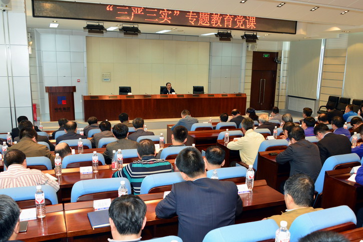 按照中央統(tǒng)一部署和哈電集團(tuán)開展“三嚴(yán)三實(shí)”專題教育安排,5月21日,哈電集團(tuán)黨委書記鄒磊帶頭講了一堂“三嚴(yán)三實(shí)”專題教育黨課。國務(wù)院國資委黨建工作局黨員教育處樊京晶參加了專題黨課,總部機(jī)關(guān)全體中層干部、所屬企業(yè)領(lǐng)導(dǎo)班子成員及黨委有關(guān)部門負(fù)責(zé)人等140余人參加了學(xué)習(xí)。集團(tuán)公司黨委常委、副總經(jīng)理苗立杰主持了專題黨課。 鄒磊以《爭做“三嚴(yán)三實(shí)”的好干部 為哈電集團(tuán)二次創(chuàng)業(yè)再上一流提供堅(jiān)強(qiáng)保證》為題,講了三個(gè)方面內(nèi)容,第一部分是深刻認(rèn)識(shí)“三嚴(yán)三實(shí)”的重大意義,第二部分是以更嚴(yán)更實(shí)精神推進(jìn)集團(tuán)二次創(chuàng)業(yè)、再上一流,第三部分是按照“三嚴(yán)三實(shí)”要求不斷凝聚起推動(dòng)哈電集團(tuán)改革發(fā)展的強(qiáng)大力量。 鄒磊在第一部分中重點(diǎn)回顧“三嚴(yán)三實(shí)”提出的由來,并分享了自己對“三嚴(yán)三實(shí)”的認(rèn)識(shí)與體會(huì),再從哈電集團(tuán)的角度講了踐行“三嚴(yán)三實(shí)”的重要意義等重要內(nèi)容。他指出,這既是一次專題黨課,同時(shí)也是對哈電集團(tuán)開展“三嚴(yán)三實(shí)”專題教育的再動(dòng)員和再部署。他講到,中央對當(dāng)前存在的問題有清醒估計(jì)和判斷,改進(jìn)作風(fēng)的難度、反腐敗斗爭的形勢依然嚴(yán)峻,因此還要進(jìn)一步加強(qiáng)黨的思想政治建設(shè)、干部的作風(fēng)建設(shè)。習(xí)總書記于2014年3月首次系統(tǒng)提出“三嚴(yán)三實(shí)”要求,之后又多次強(qiáng)調(diào)“三嚴(yán)三實(shí)”要求。2015年4月21日,中央組織召開“三嚴(yán)三實(shí)”專題教育工作座談會(huì),對開展“三嚴(yán)三實(shí)”專題教育進(jìn)行安排部署。劉云山強(qiáng)調(diào)指出,“三嚴(yán)三實(shí)”貫穿著馬克思主義政黨建設(shè)的基本原則和內(nèi)在要求,體現(xiàn)著共產(chǎn)黨人的價(jià)值追求和政治品格,明確了領(lǐng)導(dǎo)干部的修身之本、為政之道、成事之要,為加強(qiáng)新形勢下黨的思想政治建設(shè)和作風(fēng)建設(shè)提供了重要遵循。 鄒磊談了自己的體會(huì),他指出,總體來說 “三嚴(yán)三實(shí)”是一個(gè)有機(jī)的整體,“三嚴(yán)”是內(nèi)在要求,“三實(shí)”是行為取向;在“三嚴(yán)”當(dāng)中,“嚴(yán)以修身”是基礎(chǔ)、“嚴(yán)以用權(quán)”是核心、“嚴(yán)以律己”是保證;在“三實(shí)”當(dāng)中,“謀事要實(shí)”是前提、“創(chuàng)業(yè)要實(shí)”是職責(zé)、“做人要實(shí)”是底線。歸結(jié)起來,“三嚴(yán)三實(shí)”就是“嚴(yán)”“實(shí)”二字,體現(xiàn)了我們黨和黨員干部應(yīng)該具備的最本真的東西。嚴(yán)以修身要做到“三修”,即信仰之修、道德之修、境界之修。嚴(yán)以用權(quán)要做到公權(quán)不私,謀私即盜,勤勉敬業(yè),不為如貪,把權(quán)力關(guān)進(jìn)制度的籠子。嚴(yán)以律己要做到懂法守法、守紀(jì)律和真正的自律。謀事要實(shí)要表現(xiàn)在求是之實(shí)、務(wù)實(shí)之實(shí)和擔(dān)當(dāng)之實(shí)。創(chuàng)業(yè)要實(shí)要能敢于創(chuàng)業(yè),真抓實(shí)干,創(chuàng)大業(yè),還要善于審時(shí)度勢。做人要實(shí)應(yīng)做到忠誠老實(shí),講究誠信。 鄒磊指出了踐行“三嚴(yán)三實(shí)”對哈電集團(tuán)的重要意義,一是央企的性質(zhì)要求我們必須踐行“三嚴(yán)三實(shí)”;二是哈電集團(tuán)老一輩“嚴(yán)實(shí)”精神的優(yōu)良傳統(tǒng)需要繼承和發(fā)揚(yáng)光大;三是廣大職工群眾希望我們以更嚴(yán)更實(shí)的作風(fēng)推動(dòng)工作;四是解決集團(tuán)發(fā)展難題要求我們必須做到“三嚴(yán)三實(shí)”。 在第二部分鄒磊強(qiáng)調(diào)要以更嚴(yán)更實(shí)精神推進(jìn)集團(tuán)的二次創(chuàng)業(yè),將“三嚴(yán)三實(shí)”體現(xiàn)到實(shí)現(xiàn)新發(fā)展上,這是衡量專題教育成果的重要標(biāo)準(zhǔn)。他就推進(jìn)集團(tuán)改革發(fā)展的思路提出了16字方針,即“逆勢求進(jìn)、二次創(chuàng)業(yè)、創(chuàng)新引領(lǐng)、再上一流”,并就這一思路進(jìn)行了具體的分析。 鄒磊在第三部分就按照“三嚴(yán)三實(shí)”要求不斷凝聚起推動(dòng)哈電集團(tuán)改革發(fā)展的強(qiáng)大力量進(jìn)行了動(dòng)員和部署。他指出,第一要營造好的環(huán)境,切實(shí)保持良好的干事創(chuàng)業(yè)發(fā)展氛圍,嚴(yán)守政治紀(jì)律和政治規(guī)矩是鑄就良好黨風(fēng)的重要保證,選人用人導(dǎo)向是干事創(chuàng)業(yè)環(huán)境的風(fēng)向標(biāo),黨內(nèi)政治生活是黨員干部錘煉黨性的大課堂。第二要提振精氣神,切實(shí)增強(qiáng)思想自覺和行動(dòng)自覺,放下思想包袱,提振精氣神,始終保持積極進(jìn)取、昂揚(yáng)向上的朝氣,始終保持解放思想、開拓創(chuàng)新的勇氣,始終保持只爭朝夕、時(shí)不我待的銳氣,不斷攻克改革中的堡壘、突破發(fā)展中的瓶頸,在各自崗位上干出實(shí)實(shí)在在的業(yè)績。第三要勇于擔(dān)當(dāng)作為,切實(shí)推動(d