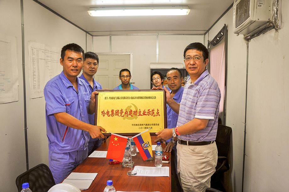 厄瓜多爾當(dāng)?shù)貢r(shí)間2014年8月8日,哈電國際公司黨委書記曲愛民到厄瓜多爾埃斯梅拉達(dá)二期熱電現(xiàn)場檢查指導(dǎo)工作,并為評為“哈電集團(tuán)黨內(nèi)建功立業(yè)示范點(diǎn)”的埃斯梅拉達(dá)熱電現(xiàn)場黨支部授牌。