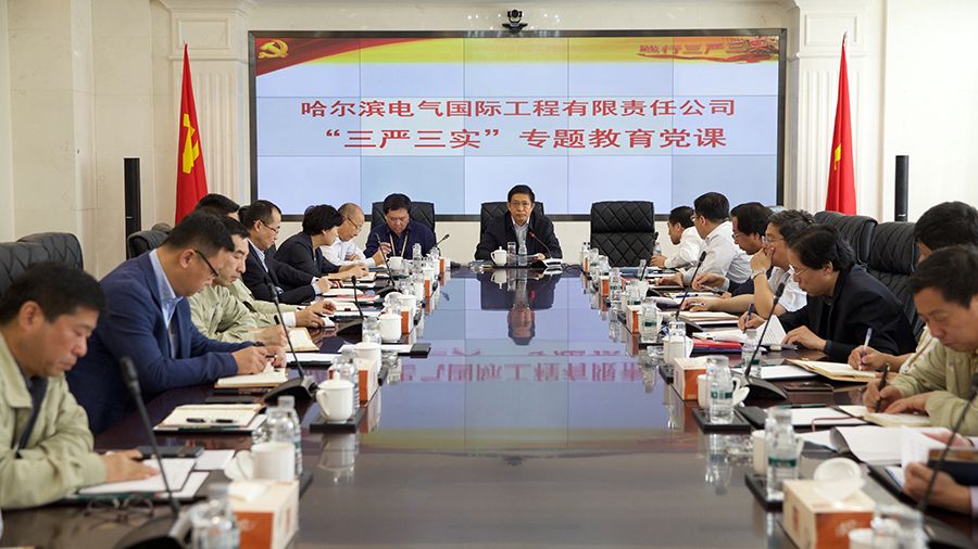 按照中央統(tǒng)一部署和哈電集團開展“三嚴三實”專題教育安排,2015年5月29日,哈電國際公司召開“三嚴三實”專題教育動員會。會后,哈電國際公司黨委書記曲愛民作了題為《為人為政之根本,干事創(chuàng)業(yè)之要害,正心修身之守則,以從嚴的精神求實的態(tài)度開展“三嚴三實”專題教育》的專題教育黨課;哈電國際公司董事長、總經(jīng)理郭宇作了題為《認真學(xué)習(xí),深刻領(lǐng)會,立足企業(yè),著眼發(fā)展,扎實踐行“三嚴三實”,全面推進公司再上新臺階》的專題教育黨課。公司黨委副書記張立偉主持會議并傳達了哈電集團董事長、黨委書記鄒磊“三嚴三實”專題教育講話精神。哈電國際公司副處級及以上領(lǐng)導(dǎo)干部參加了會議。