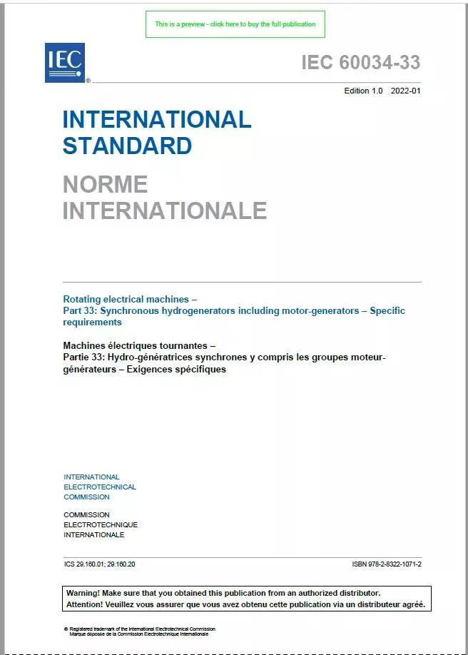 2022 年1 月, 由哈電集團(tuán)技術(shù)人員牽頭制定的國(guó)際標(biāo)準(zhǔn)IEC60034-33"同步水輪發(fā)電機(jī)(發(fā)電電動(dòng)機(jī))基本技術(shù)要求"正式發(fā)布實(shí)施。這是我國(guó)旋轉(zhuǎn)電機(jī)領(lǐng)域首次主導(dǎo)制定的國(guó)際標(biāo)準(zhǔn),也是我國(guó)國(guó)際標(biāo)準(zhǔn)化工作的又一個(gè)重大突破。